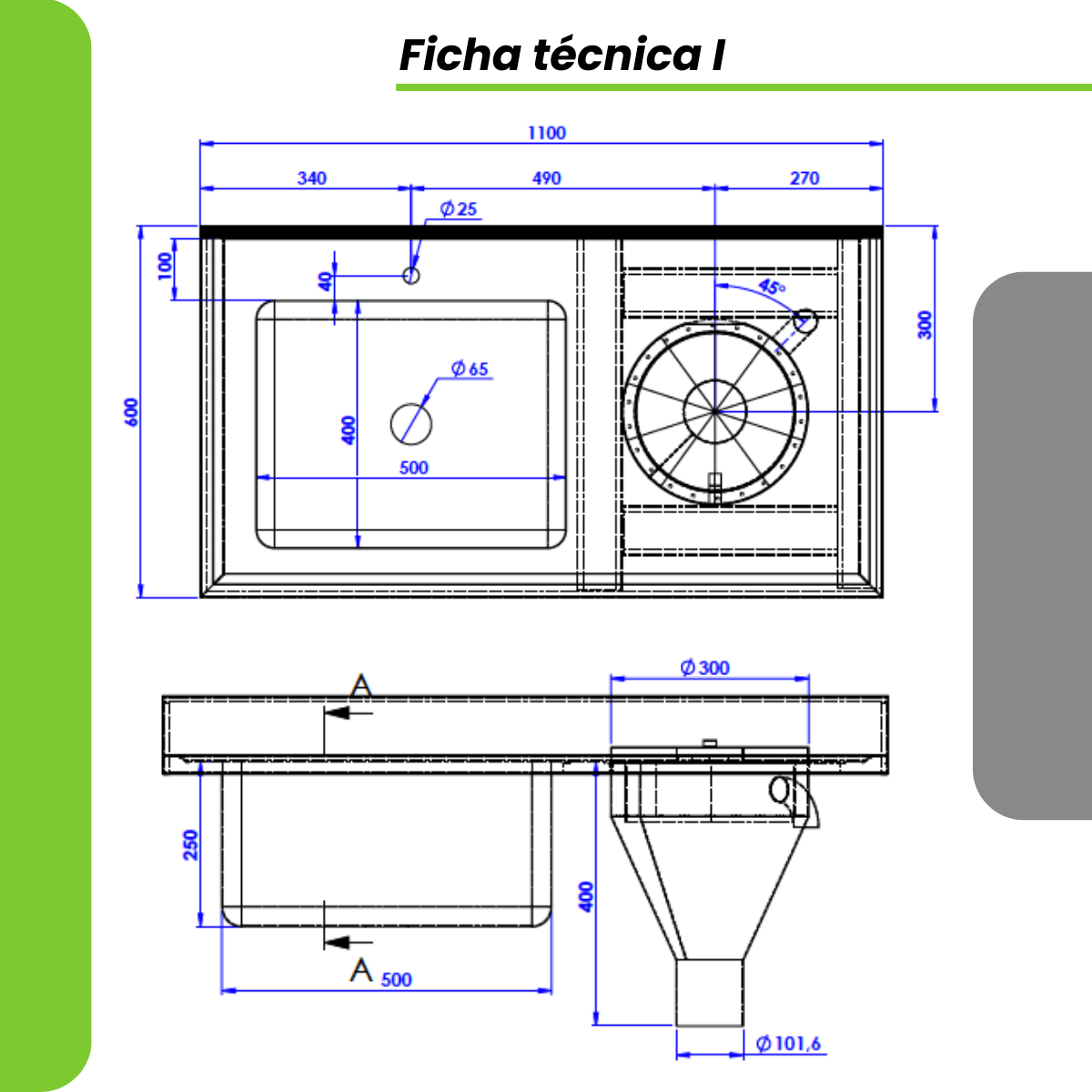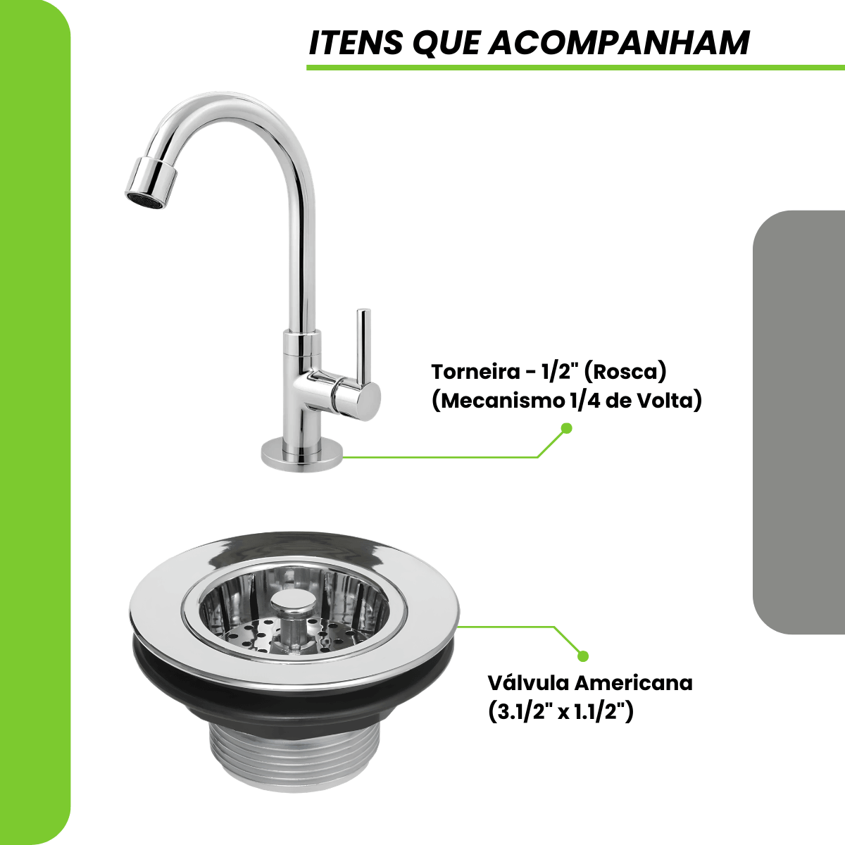Com medida de 1,10x60cm, este modelo é ideal para projetos que buscam bom aproveitamento de espaço sem abrir mão da robustez e da praticidade. Seu acabamento em inox também agrega um visual técnico, limpo e profissional ao ambiente.