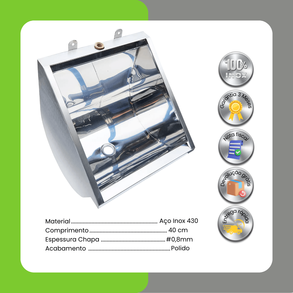 Material: Aço inox AISI 430