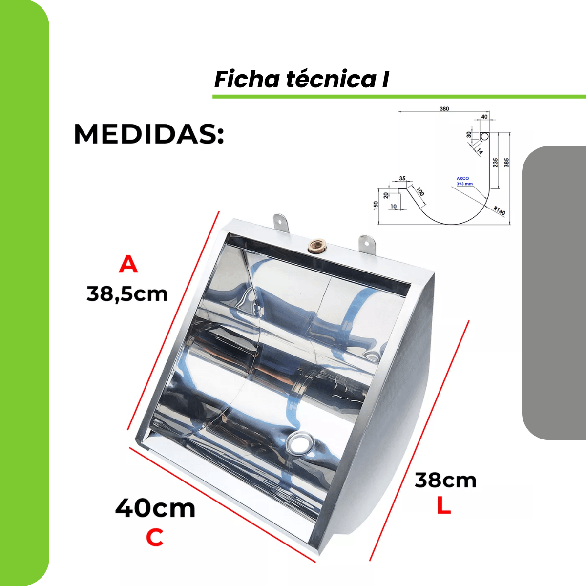 Medidas: Comprimento 400mm x Largura 380mm x Altura 385mm