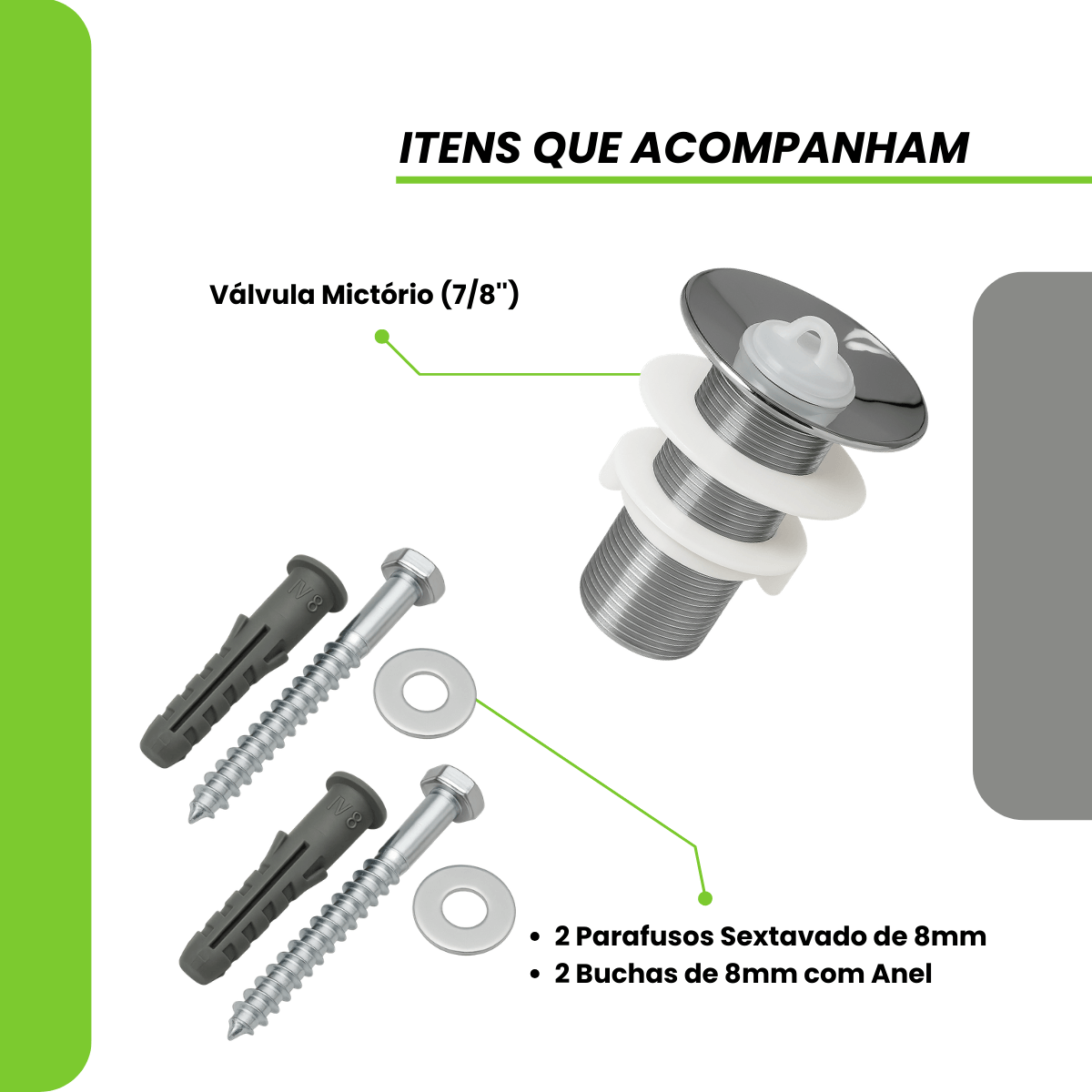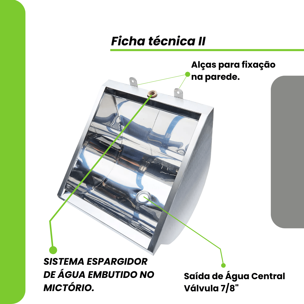 Mictório Individual em Aço Inox 60cm + Acessórios Grátis